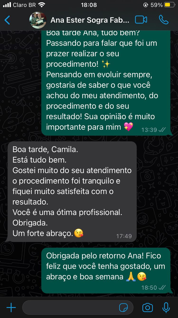 Minha missão vai além de entregar procedimentos estéticos. É entregar mais amor próprio, aumentar a autoestima e fazer você se sentir bem com você mesma.